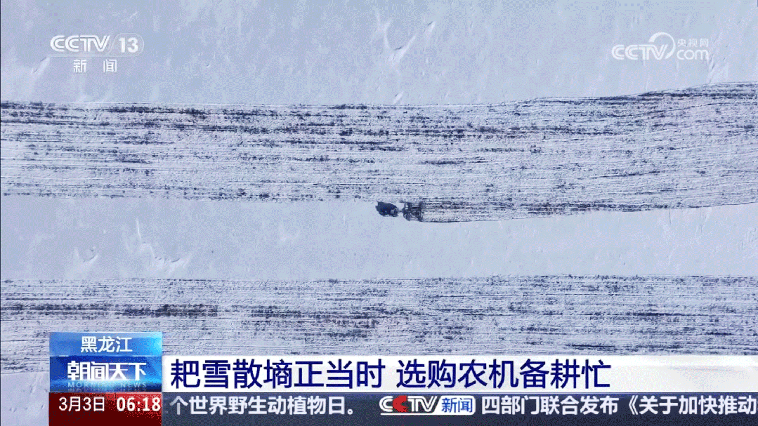 According to CCTV's coverage, in the cold-climate agricultural regions of Northeast China, fields remain covered with compacted snow during early spring. LOVOL Intelligent Agriculture tractors are deployed for snow harrowing operations, breaking up hardened snow and mixing it with topsoil to accelerate the melting process.